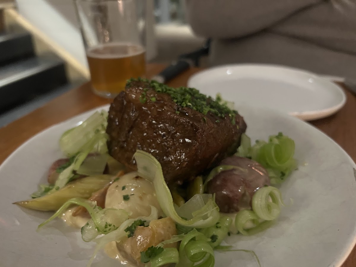 An outstanding dining experience. Food and wine competes for best in Fairfield County. Staff are professionals from front to back. GrayBarns is a world-class experience at a great price point. A must-return for us now. Vibe is that of relaxed confidence. Mix of locals and visitors. No pretense. Kind of sophisticated rustic. Prevalent in Europe. Rare in States. Context: We love to cook and eat. We choose travel destinations for food. We spend summers nearby but haven’t been to GrayBarns for several years. Our mistake. Details: We ate at bar by choice. Bartender Andrew knew the menu inside-out and made excellent recommendations. Wine list is extremely well curated, pair seamlessly with food menu and great value for the quality. Nicely done, Gregory. Food: Pork chop the best I’ve ever eaten. Flavorful, tender and juicy. Iberico breed from Texas. Chef suggests slightly rare of medium. Trust him. Smoked carrot curls on plate complemented brilliantly. Miso cod let quality of the fish shine through the preparation. Hard to get right. Chef nailed it. We added a side of fried oyster mushrooms with our entrees and very glad we did. During almost every meal my wife and I can usually identify something we would do differently. Not the case at GrayBarns. The dinner was perfectly composed, prepared and presented. Timing was spot on. We were there on Tuesday night, so Sous Chef likely running the kitchen. If so, great job, Sous. For wine by the glass geeks: Gaston Chiquet Champagne as aperitif. Has the brioche nose that we prefer. Austrian pinot noir excellent pairing with pork chop. Burgundian depth and gentle tannins. This is going to become my daily drinker. Macon-villages with the cod superlative. We shared an Amaro digestivo to close. Ask Andrew for a recommendation as most of these are off-list. Something else GrayBarns gets right: valets were welcoming, professional, and polite. Set a good feel to start the evening.